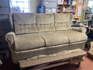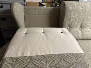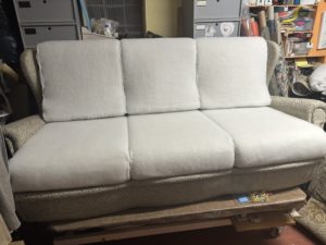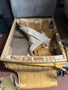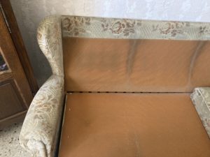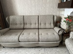 La mousse de ce fauteuil a été changée pour une mousse plus ferme en Hr38kg avec donc une adaptation sur mesure. Mes clients sont repartis ravis avec un ensemble tout neuf alors même qu’ils hésitaient à le déposer à la décharge avec peine du fait de sa qualité. Nouveau décor avec ce magnifique velours de chez Kobé.
