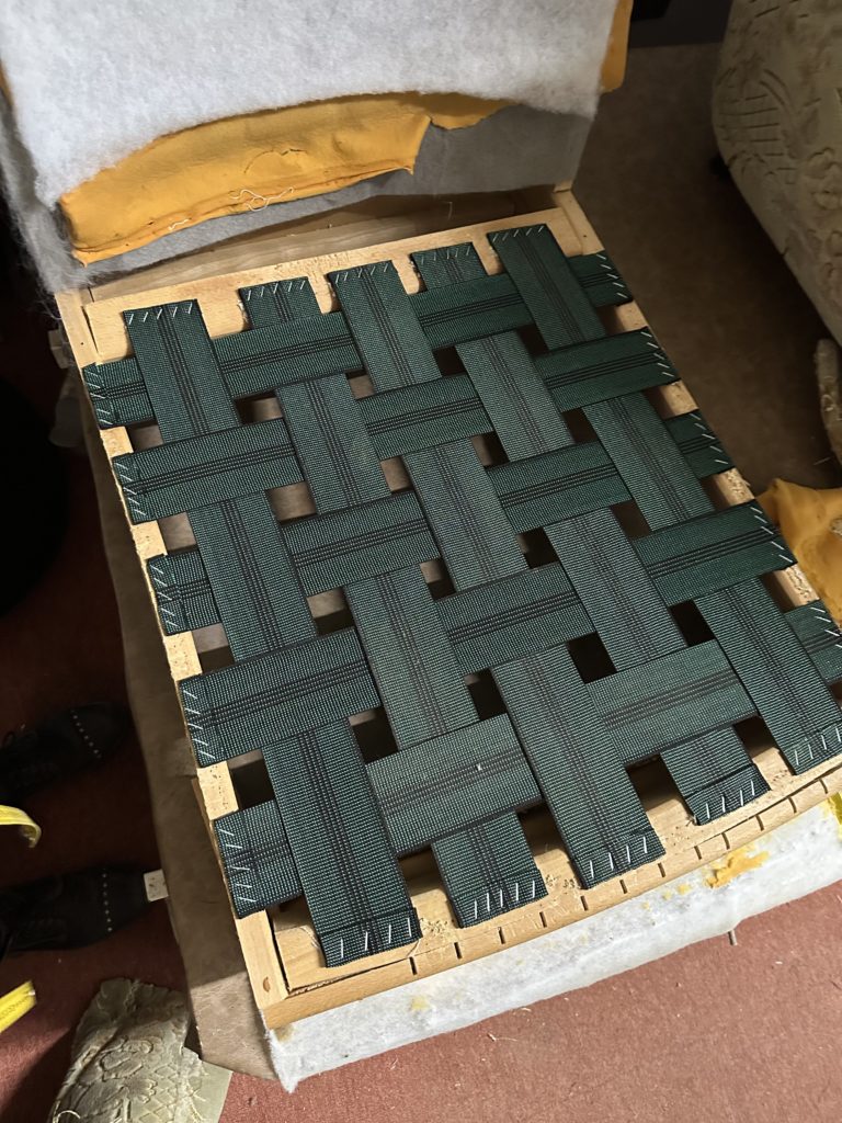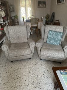 Reprise de la structure et amélioration du confort avec un changement de mousse et une reprise du sanglage pour les 2 fauteuils.