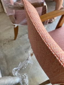 La mousse de ce fauteuil a été changée pour une mousse plus ferme en Hr38kg avec donc une adaptation sur mesure. Mes clients sont repartis ravis avec un ensemble tout neuf alors même qu’ils hésitaient à le déposer à la décharge avec peine du fait de sa qualité. Nouveau décor avec ce magnifique velours de chez Kobé.